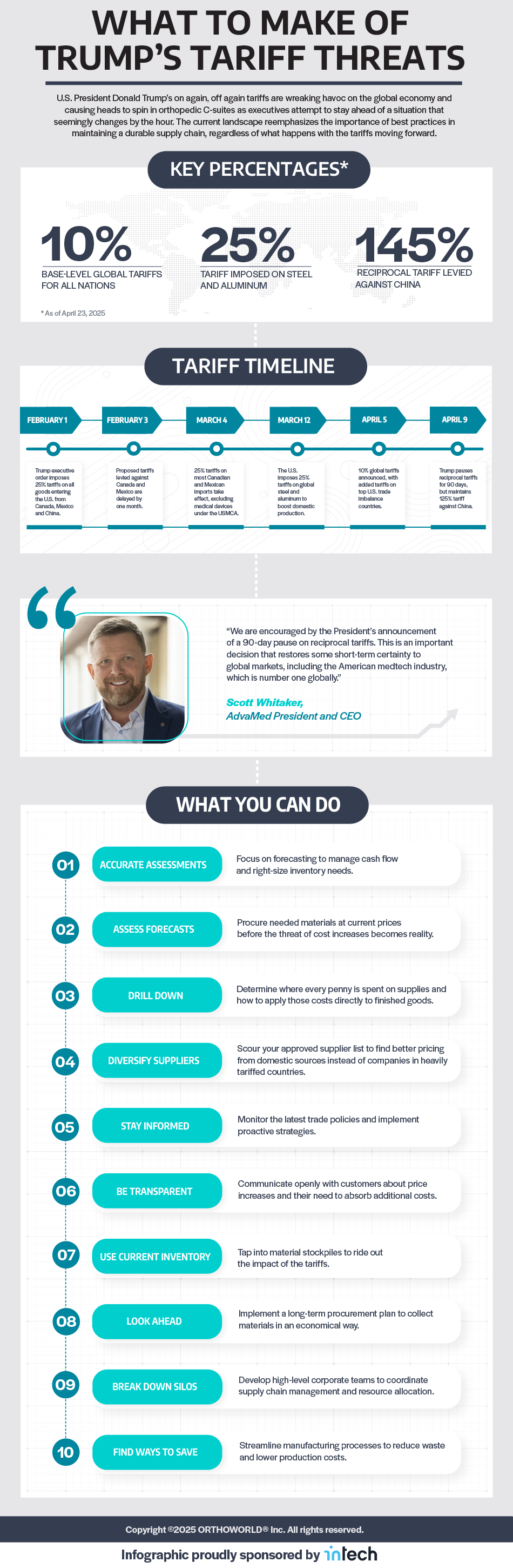 President Trump’s sporadic tariff policy aims to reset U.S. trade relations and protect American manufacturing. Those potential long-term goals have so far caused short-term pain as orthopedic leaders across the world try to chart a productive course forward.