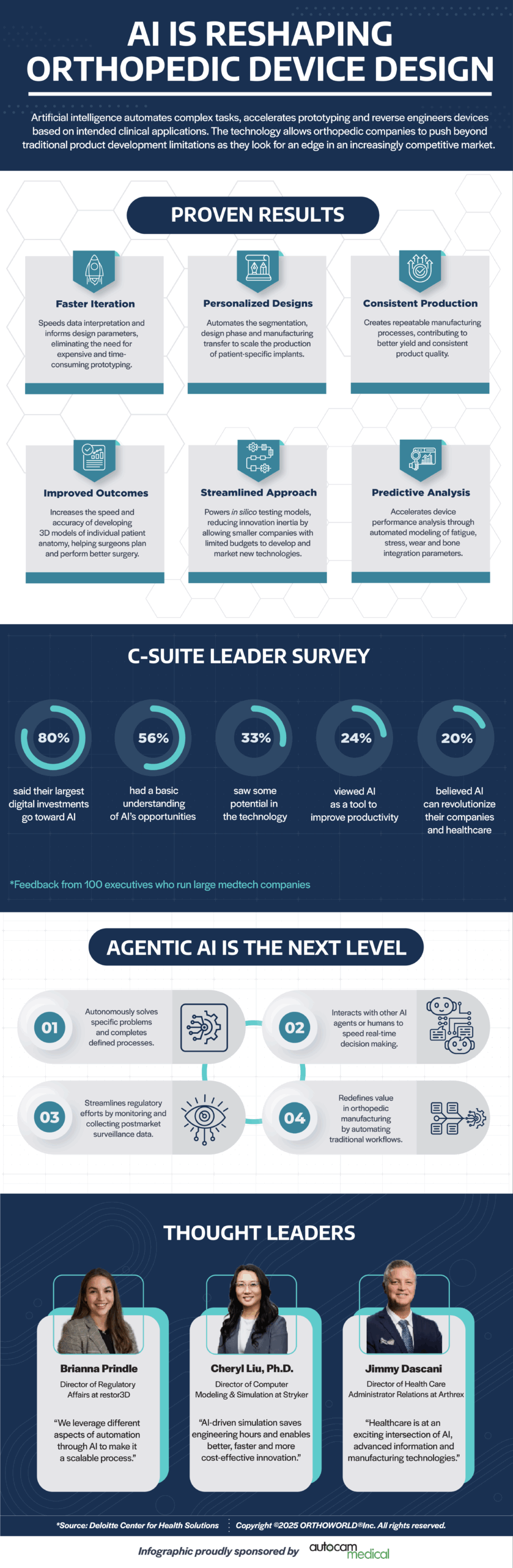 AI is reimaging the ways orthopedic devices are designed and produced by analyzing larges amounts of clinical data that informs engineering decisions and automating repetitive tasks to free up members of the design team to focus their energies and expertise on creative iteration.